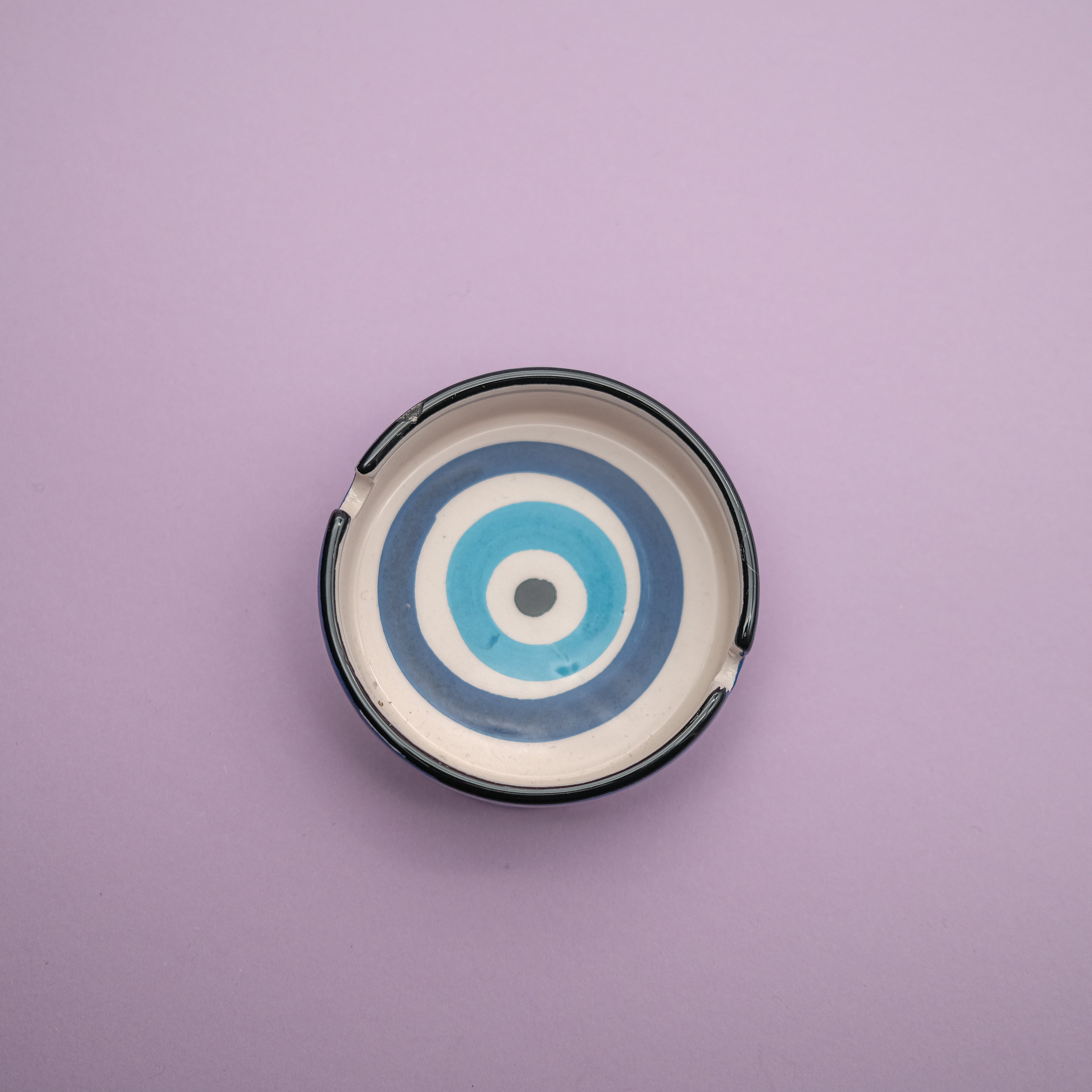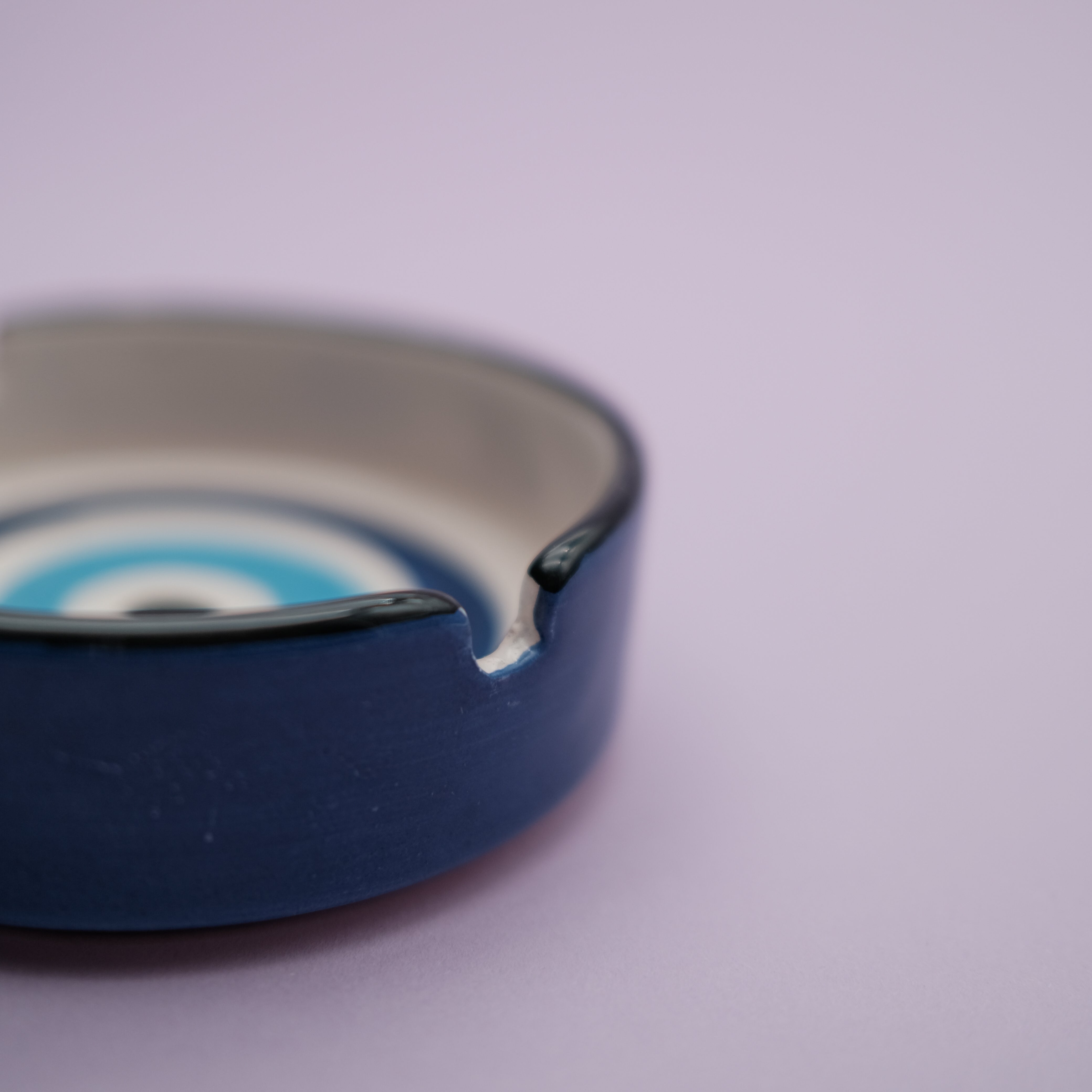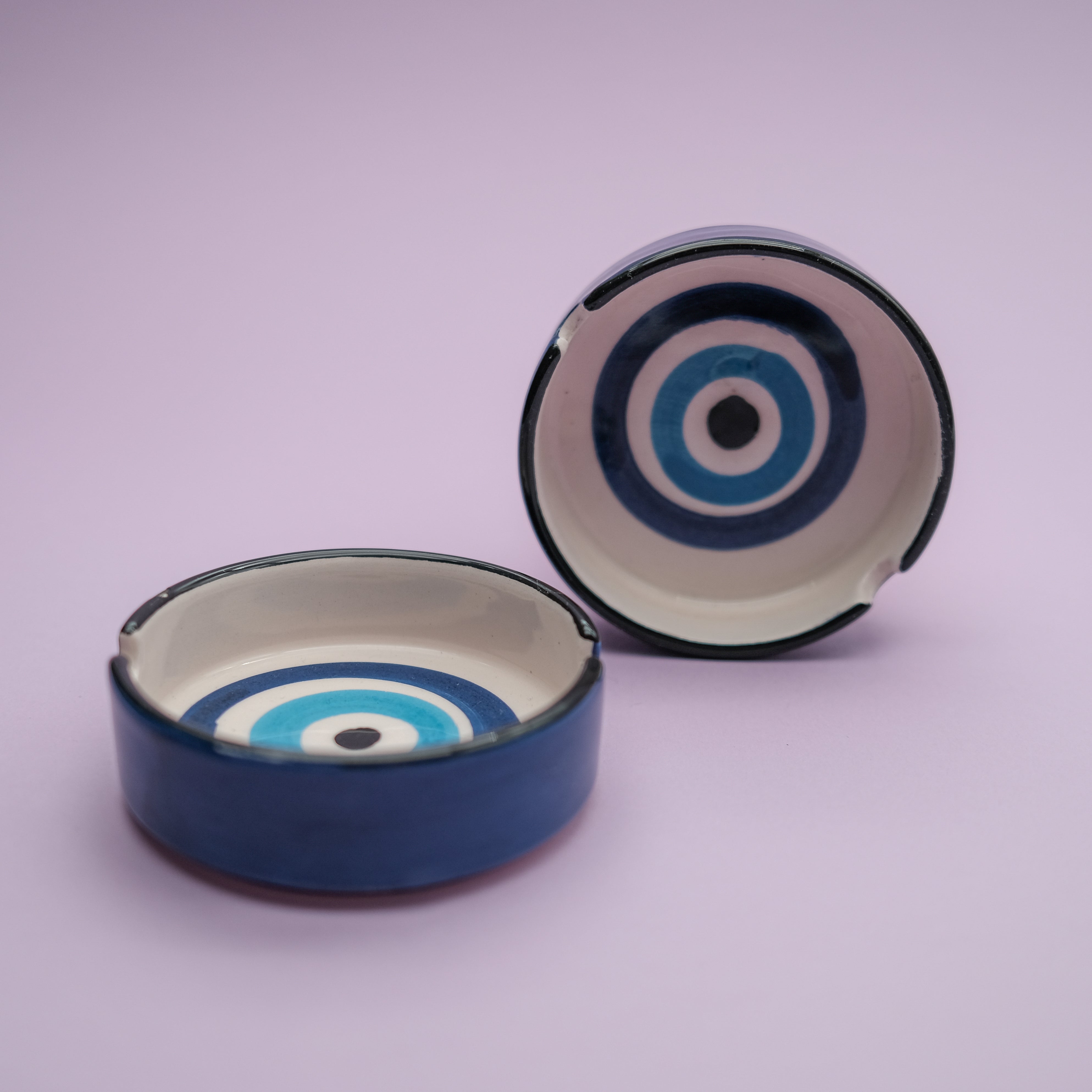 Dieser handgefertigte blaue Aschenbecher trägt das klassische Nazar-Auge – ein zeitloses Symbol für Schutz, Klarheit und Ruhe.