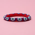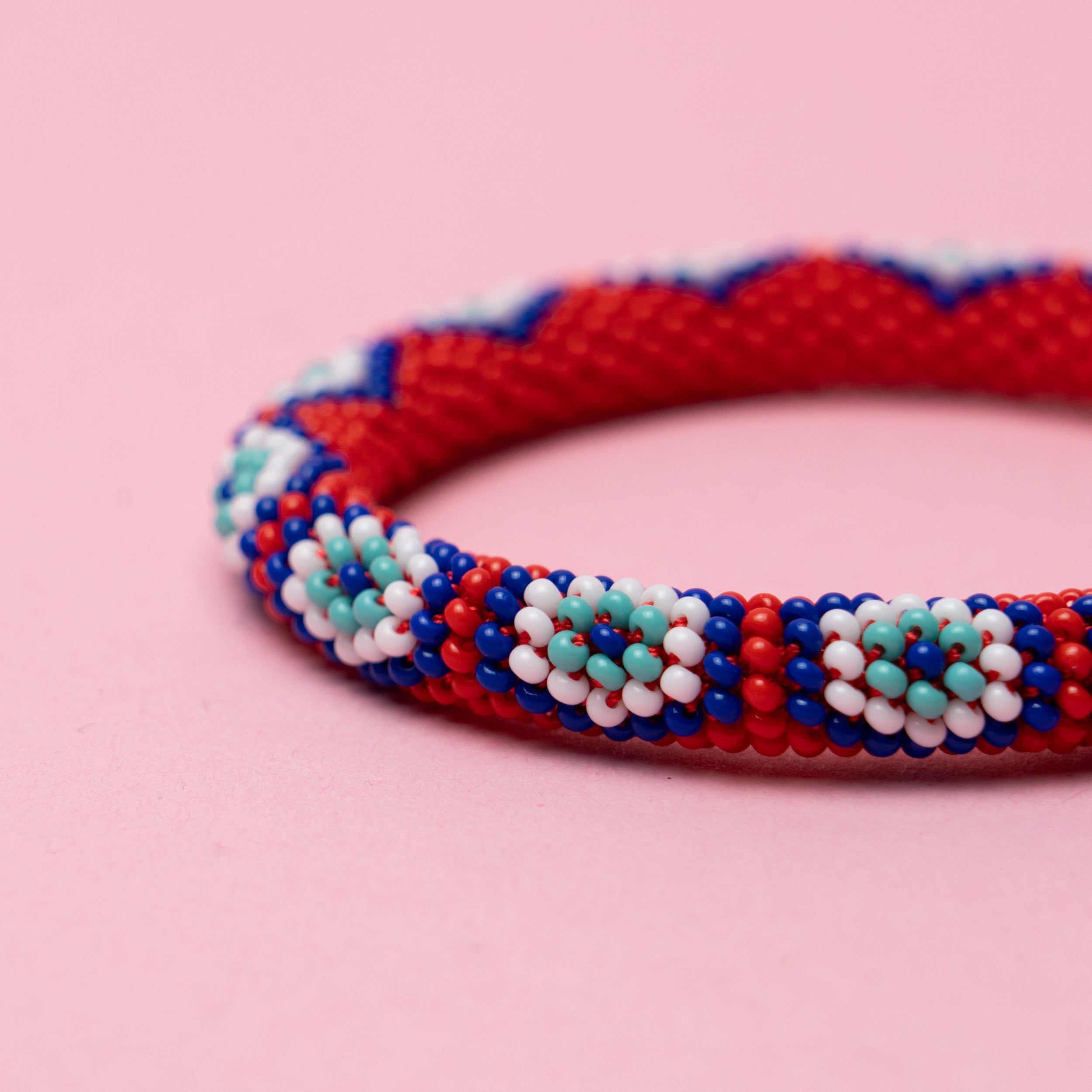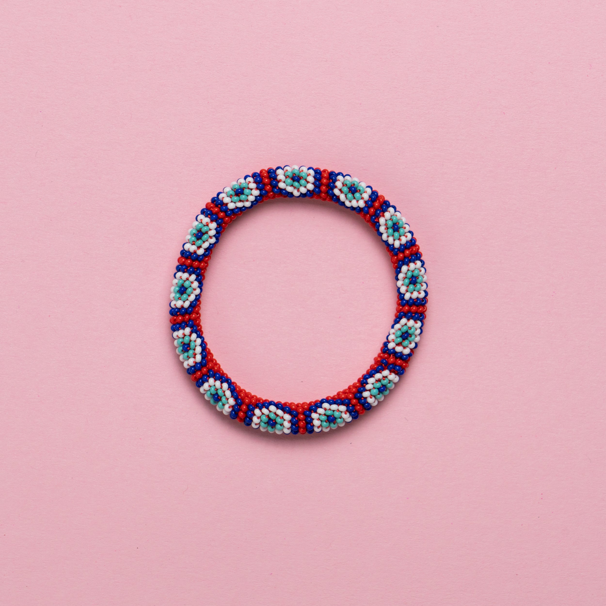 Unser Miyuki Armreif ist in liebevoller Handarbeit von Frauen aus Istanbul hergestellt worden. Mit dem abstrakten Muster von Nazar im Miyukigeflecht, steht das Armband im spirituellen Schutz vor dem "bösen Blick". Um es anzuziehen, rollt man das Armband um seine Hand zum Handgelenk. Habt keine Angst, es dehnt sich kurz und zieht sich dann am Gelenk wieder zusammen.