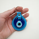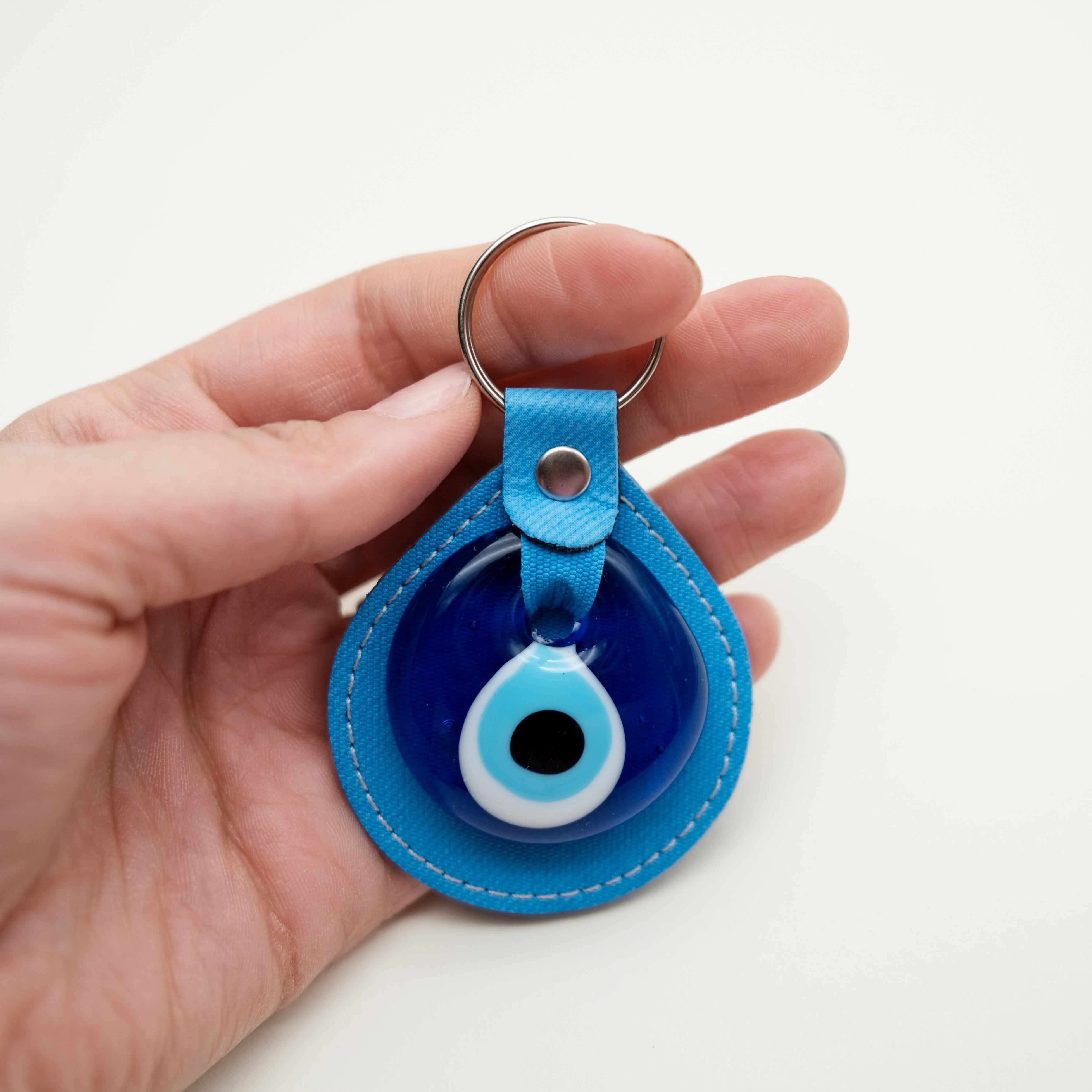 Jeder Schlüsselanhänger ist nach traditioneller Handwerkskunst in Izmir gefertigt und damit ein unverwechselbares Unikat. Das Nazar ist aus Glas und wird in einem grauen Lederband gehalten. Mit diesem Schlüsselanhänger an ihrem Schlüsselbund trägst Du deinen spirituellen Schutz vor dem "bösenBlick" immer bei Dir. Es eignet sich auch hervorragend als Geschenk.
